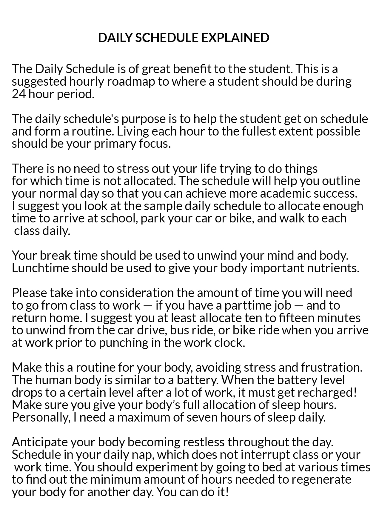 - We share a personal roadmap for you to record and allocate time for your school, study and leisure activities with family and friends!