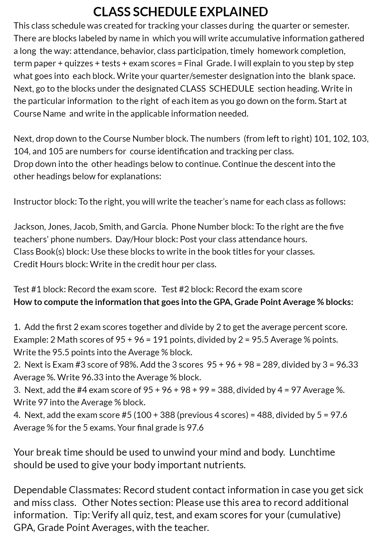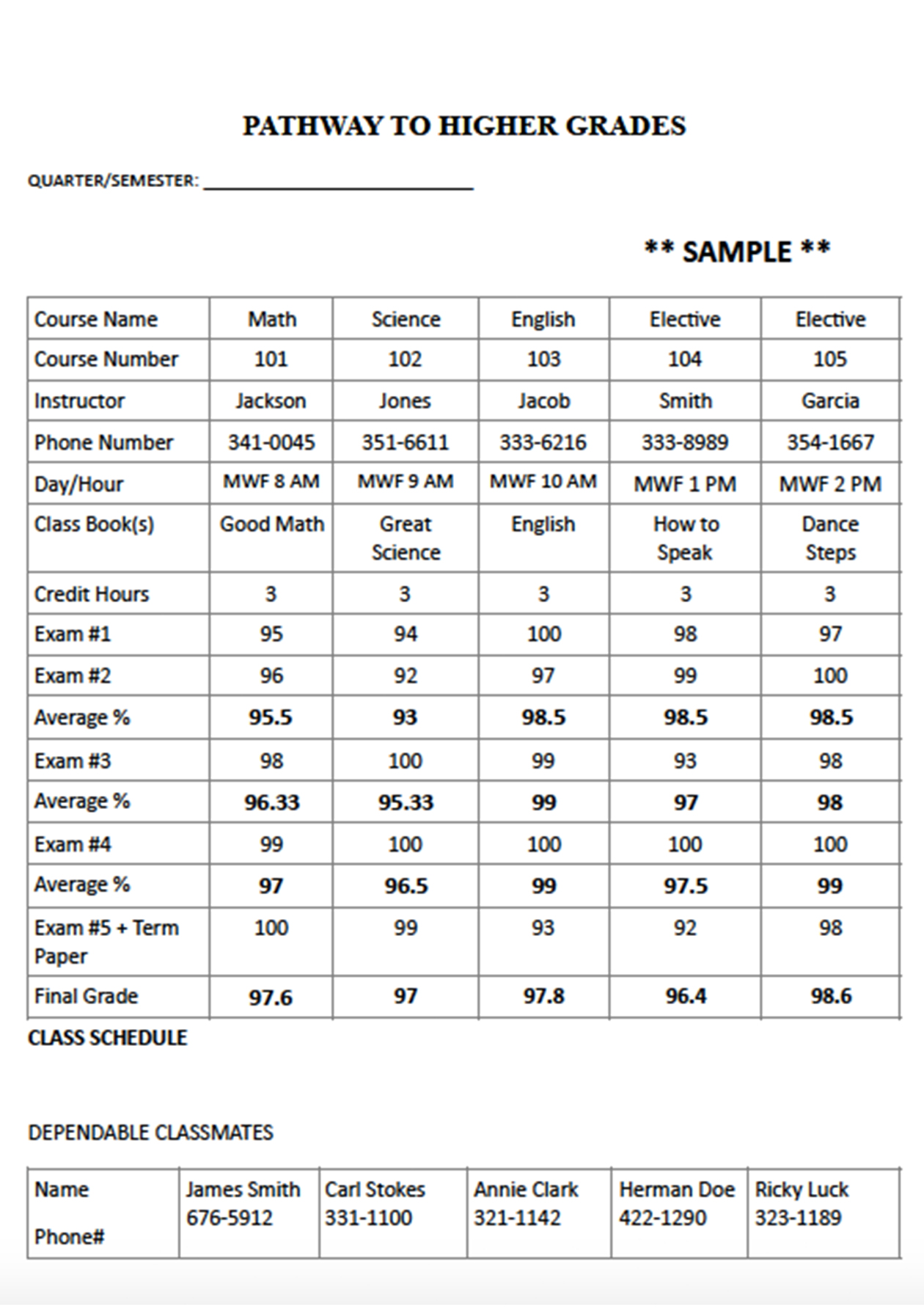 - Provide areas for accurate up to date tracking of your classes, exam scores, grade point averages and books information and assigned class teachers.