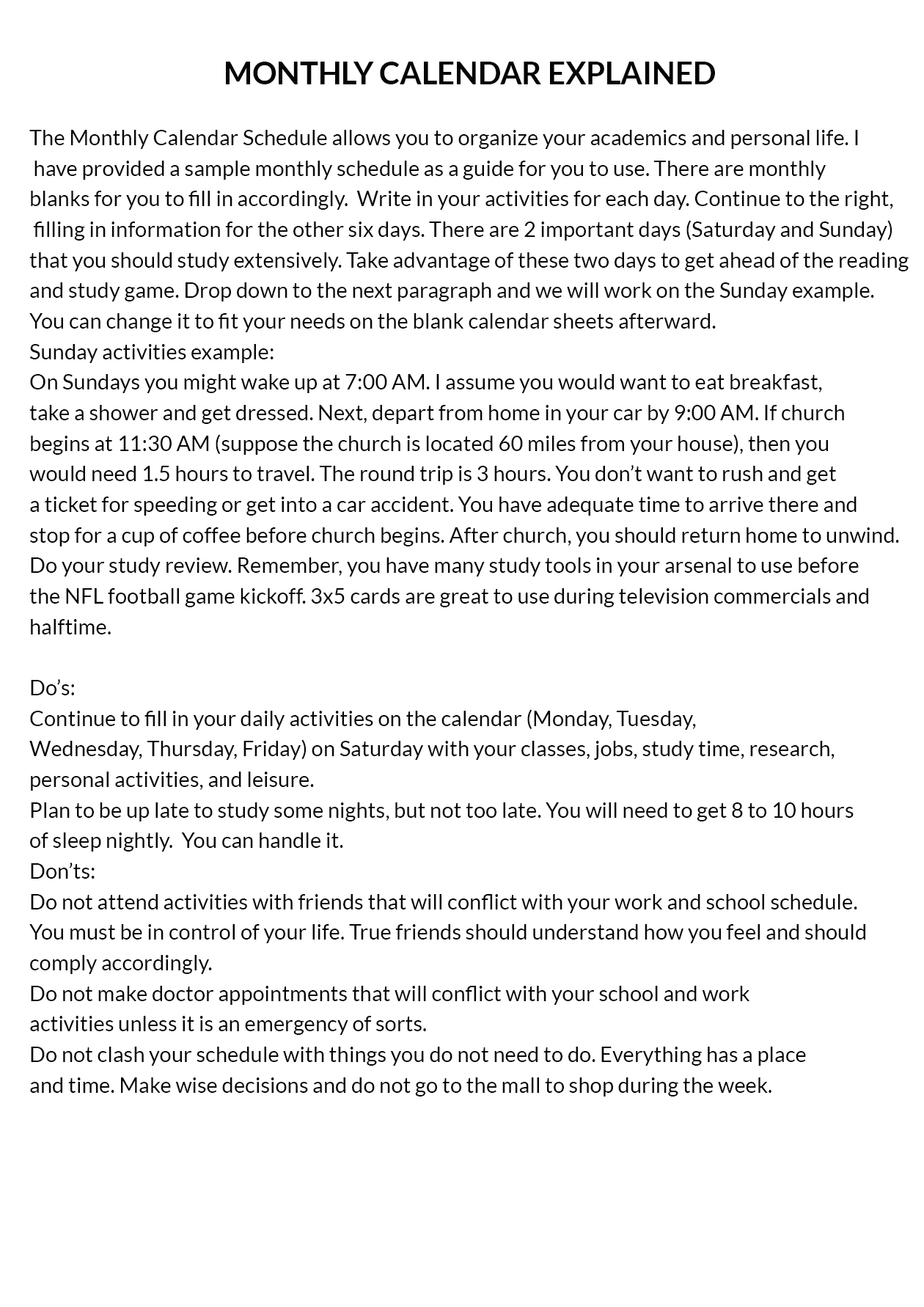 - Future calendar planning for school, work and personal activities.